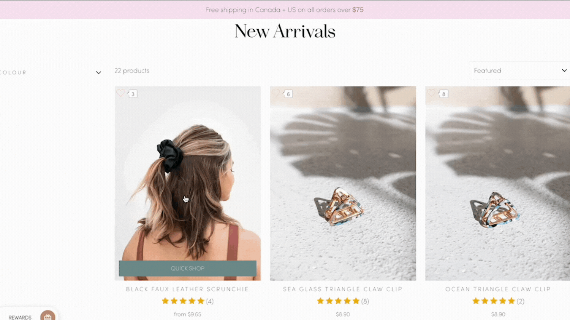 Canadian hair care accessories brand Flirty Pineapple (flirtypineapple.com) animates their product browsing experience with image rollover animations.